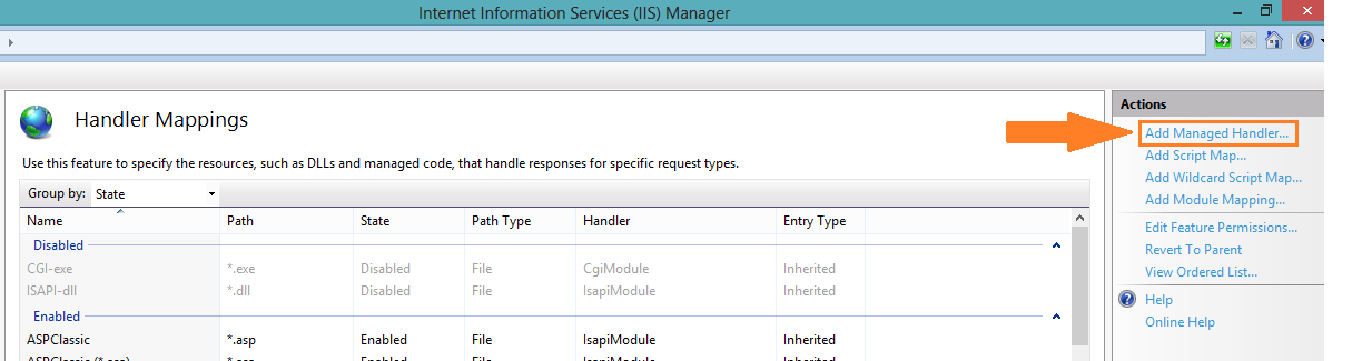 j. Add handler mapping in IIS after this. Go to the subfolder named “smarten” and add a new managed handler as below.
