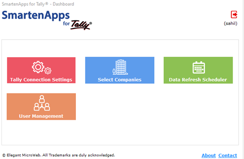 - Step 5: Following login to desktop app, you will be directed to the Home Page of SmartenApps for Tally