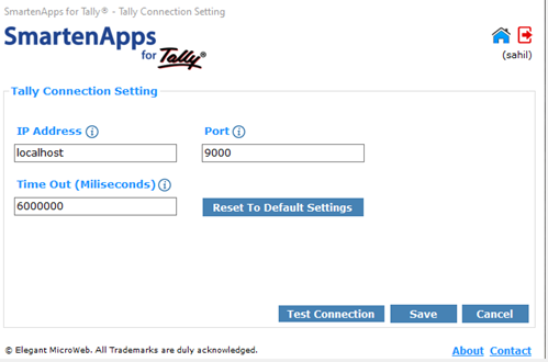 - Step 6: Click on “Tally Connection Settings.,” and enter the IP Address, Port and Timeout parameters