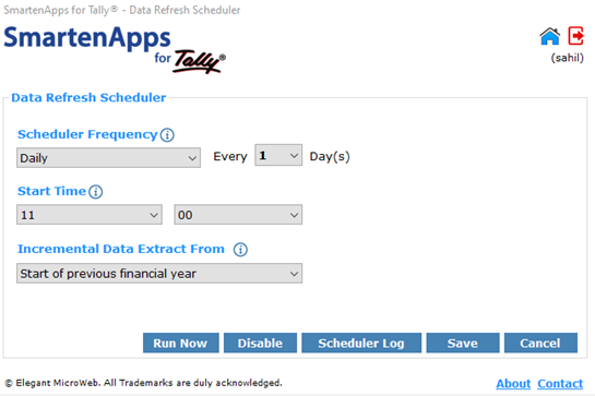 - Step 9: Click on Data Refresh Scheduler to set up your data extraction scheduler frequency, start time, and incremental data extraction from a previous or current financial year, and then press Save.